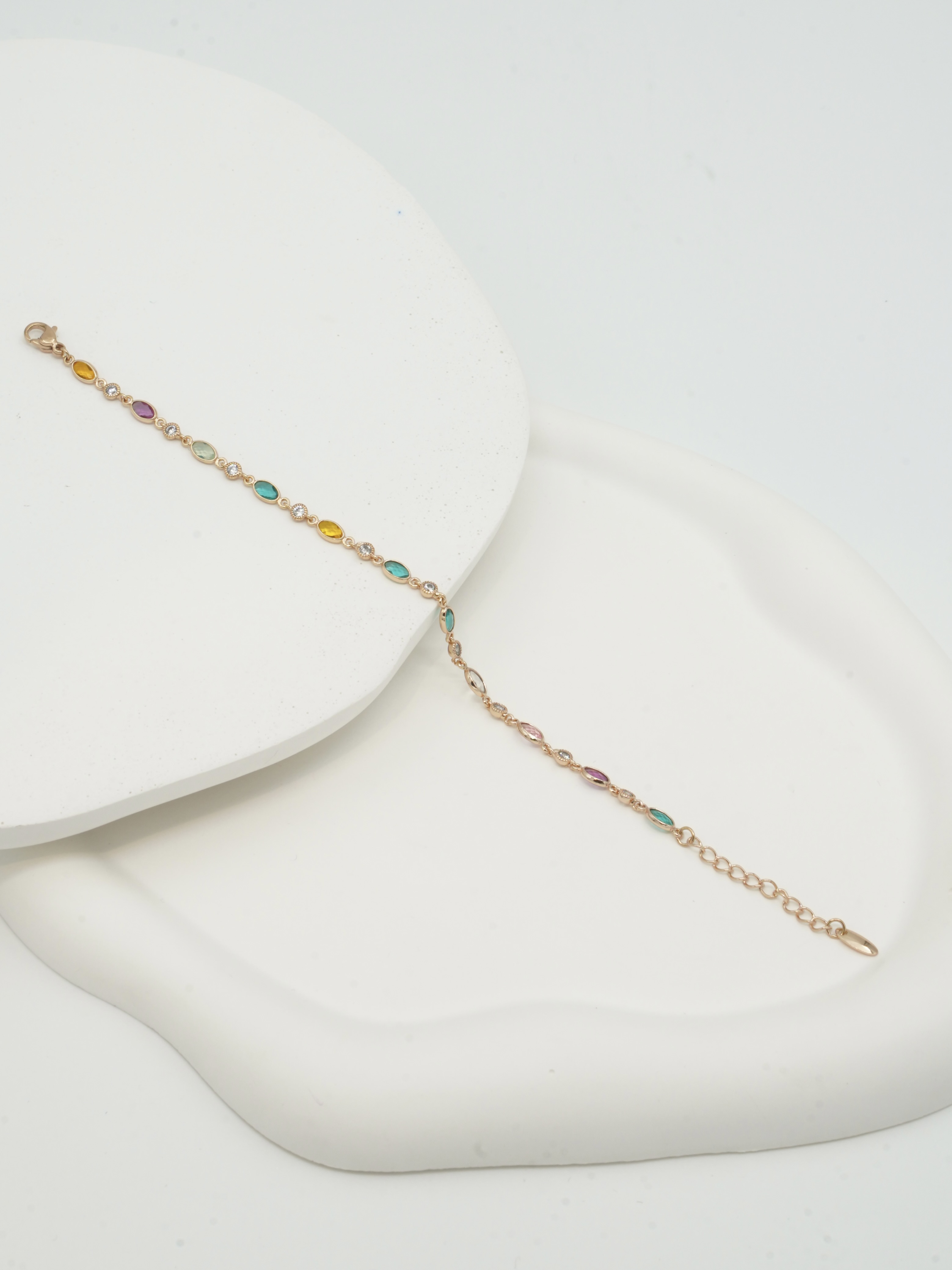 RENKLİ ZARİF TAŞLI GOLD ZİNCİR KADIN BİLEKLİK