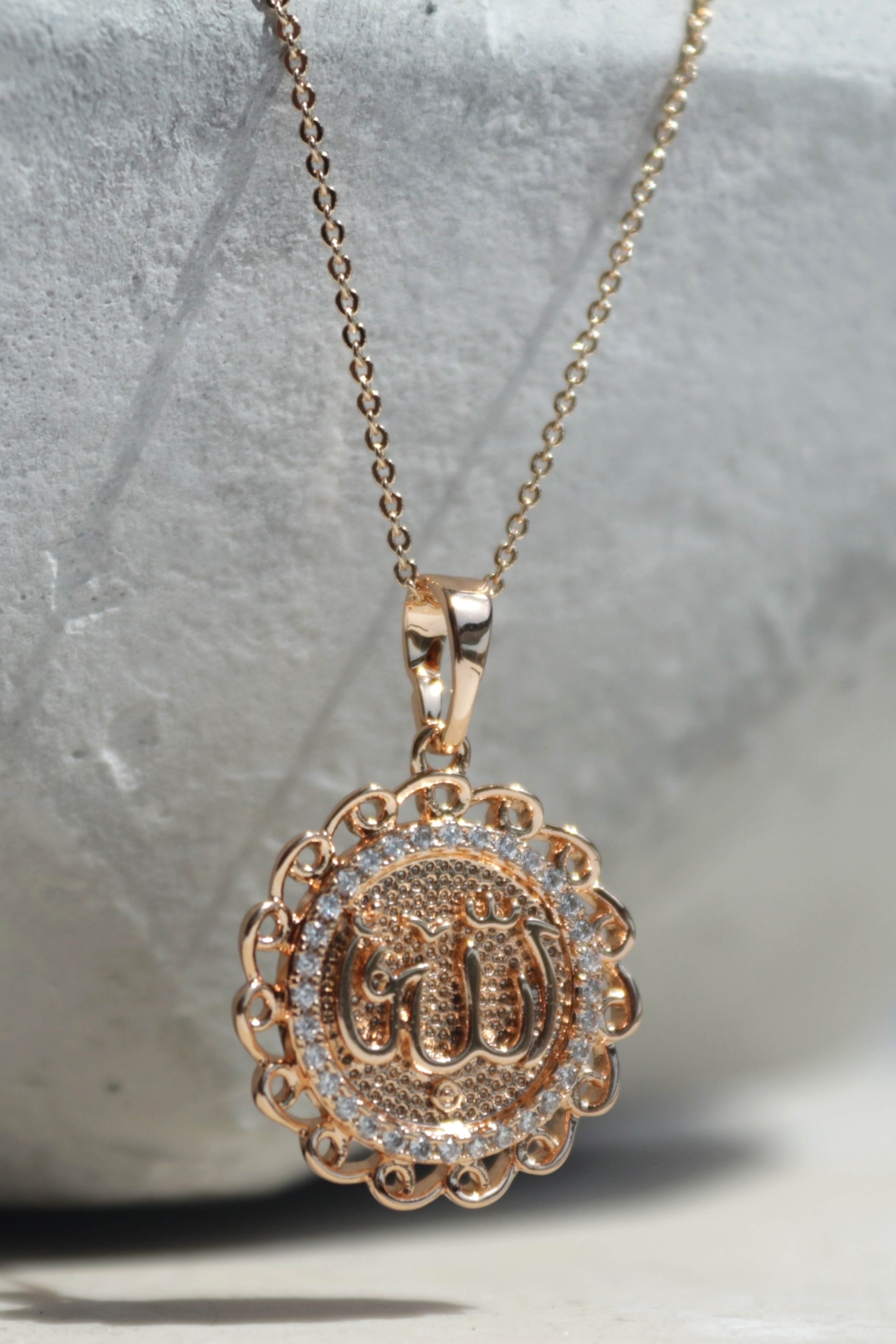 ALLAH YAZILI TAŞLI GOLD KOLYE