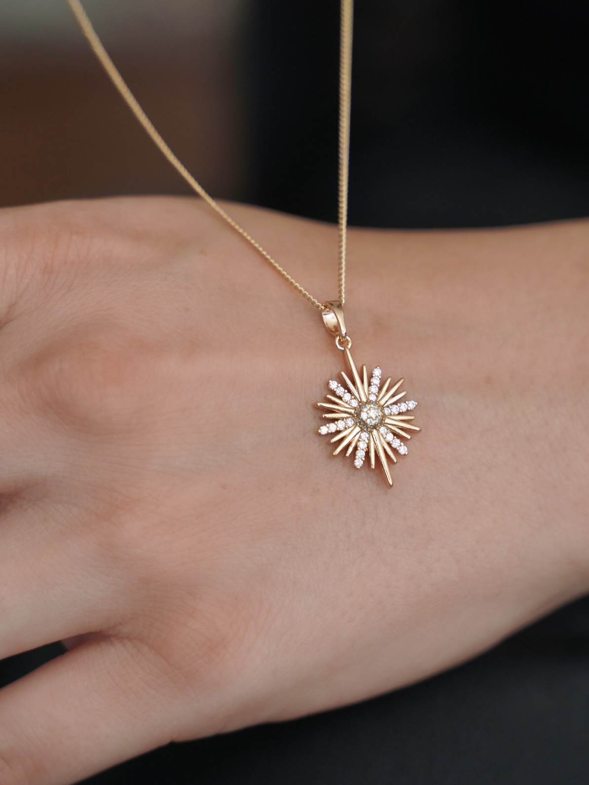 ZİRKON TAŞLI PAPATYA GOLD KOLYE